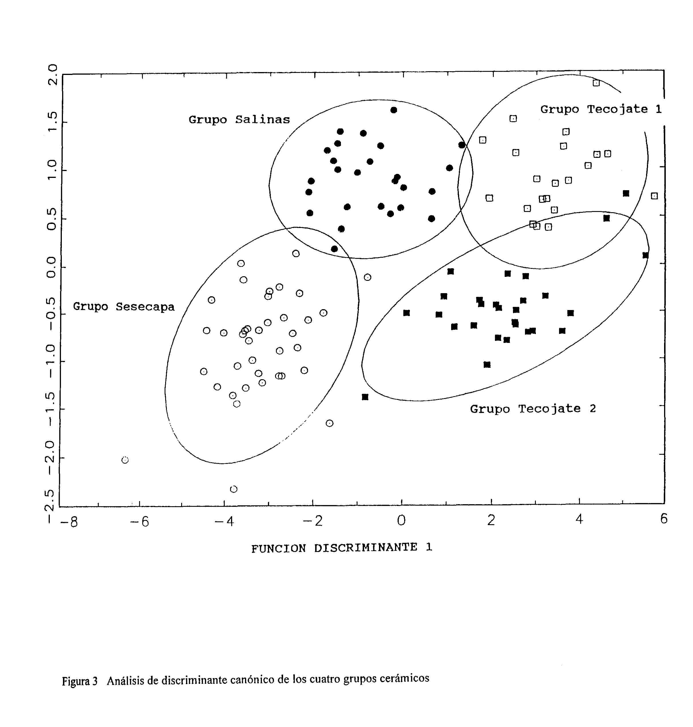 Figura 3 Análisis de discriminante canónico de los cuatro grupos cerámicos