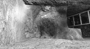 Por otra parte en la Operación B6-4 se encontró a 3.30 m de profundidad el mismo rasgo sellado por bloques de talpetate y una de las tapaderas de este consistía en una piedra de moler reutilizada. En el perfil norte se evidenció una estructura de bloques de talpetate que consiste en varios terrones grandes que forman cuadrados a manera de esquinas (Alvarado 2012). Los terrones grandes al sur están en un nivel más bajo a 0.20 m y varios presentaban señales de quema.
