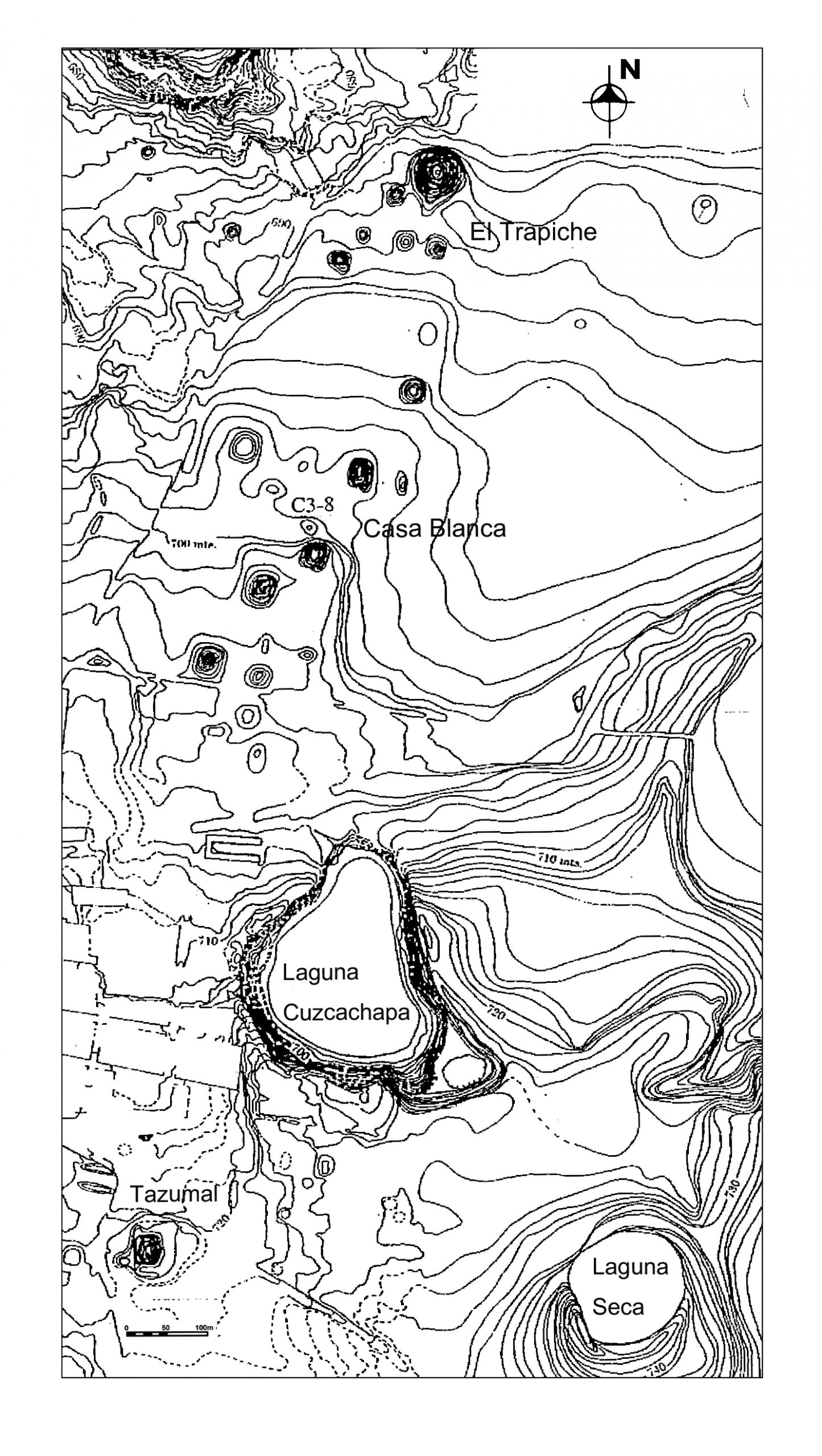 En la Cordillera de Apaneca en el extremo sureste de la región Maya a una altura de 700 m (s.n.m.) se localiza la zona arqueológica de Chalchuapa (Fig.1), la cual se divide en 11 áreas principales como Tazumal, Casa Blanca, El Trapiche, entre otros. Con el paso del tiempo, los diversos procesos y cambios culturales favorecieron que la parte nuclear se fuera trasladando de un sitio a otro favoreciendo con esto la actividad humana continua en una larga secuencia temporal. En este artículo presentamos el estudio del material cerámico de los periodos Preclásico y Clásico de El Trapiche vinculados a fechamientos aportados por radiocarbono 14.