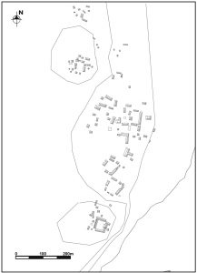 El grupo Preclásico de La Unión era un poco más humilde y consistía de cinco montículos, tres con alturas de cuatro metros y volúmenes de alrededor de 1000 m3 (Fig.4). Su plaza era más restringida y sólo tenía espacio para 400 personas usando el coeficiente más conservador de Inomata (2006). Es difícil comparar el tamaño de aquella plaza con un grupo residencial porque en La Unión ningún grupo residencial claro ha sido identificado. Pero hay evidencia de un centro monumental en ambos valles, construido por y sirviendo como escenario para los rituales y actividades de la población local.