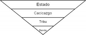 Político: La organización socio-política evoluciona desde bandas, a tribus, a cacicazgos, a organizaciones de Estado y a imperios (Fig.8).